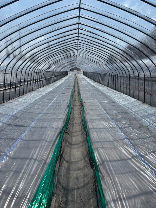 メロンハウス内、マルチ敷き